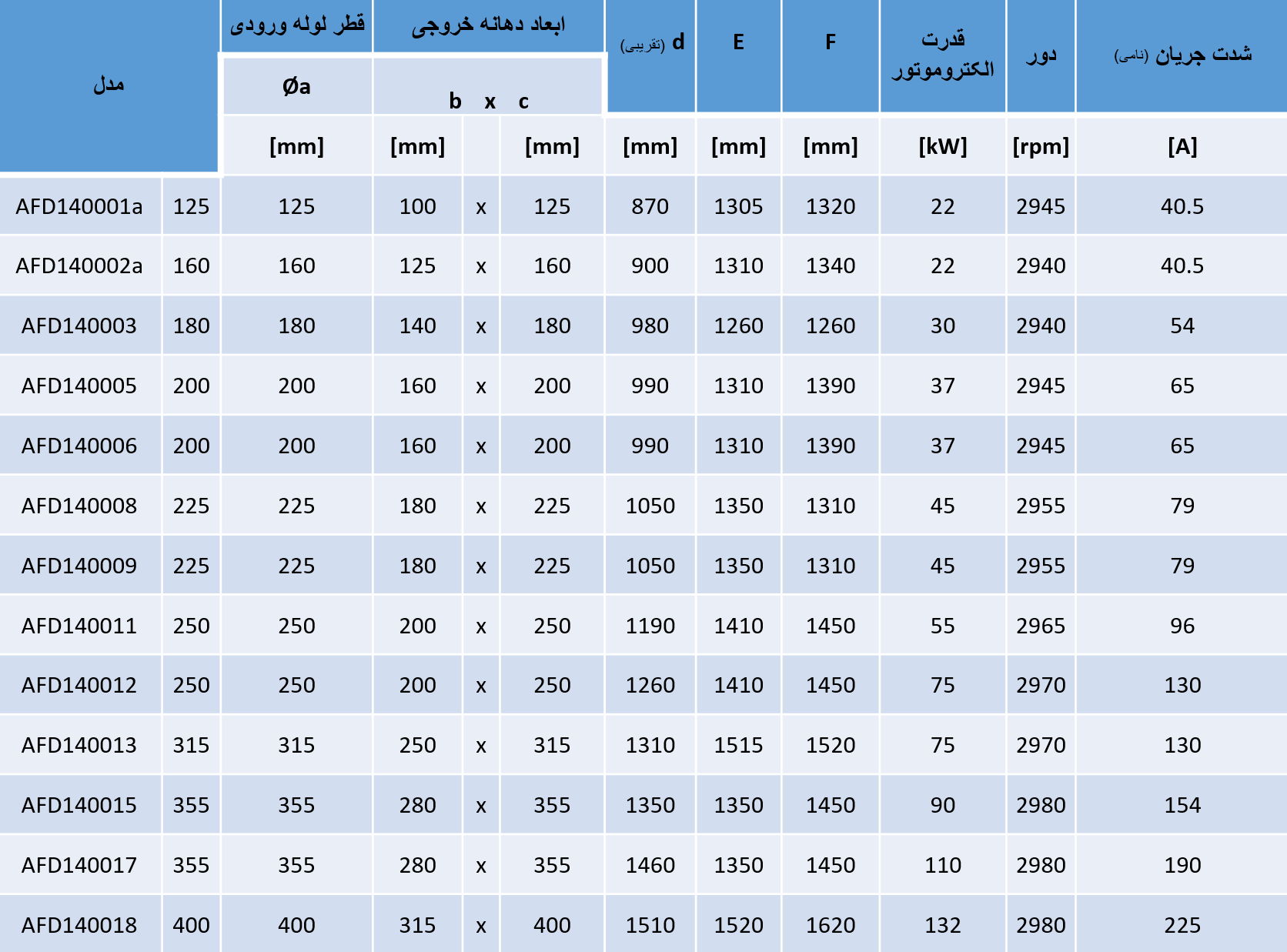 محدوده فن های 14 کیلوپاسکال مدل : AFD140002 - 160 تماس و مشاوره رایگان مدل : AFD140001 - 125 تماس و مشاوره رایگان مدل : AFD140005 - 200 تماس و مشاوره رایگان مدل : AFD140003 - 180 تماس و مشاوره رایگان مدل : AFD140008 - 225 تماس و مشاوره رایگان مدل : AFD140006 - 200 تماس و مشاوره رایگان مدل : AFD140011 - 250 تماس و مشاوره رایگان مدل : AFD140009 - 225 تماس و مشاوره رایگان مدل : AFD140013 - 315 تماس و مشاوره رایگان مدل : AFD140012 - 250 تماس و مشاوره رایگان مدل : AFD140017 - 355 تماس و مشاوره رایگان مدل : AFD140015 - 355 تماس و مشاوره رایگان مدل : AFD140018 - 400 تماس و مشاوره رایگان جدول ابعاد فن های 14kPa