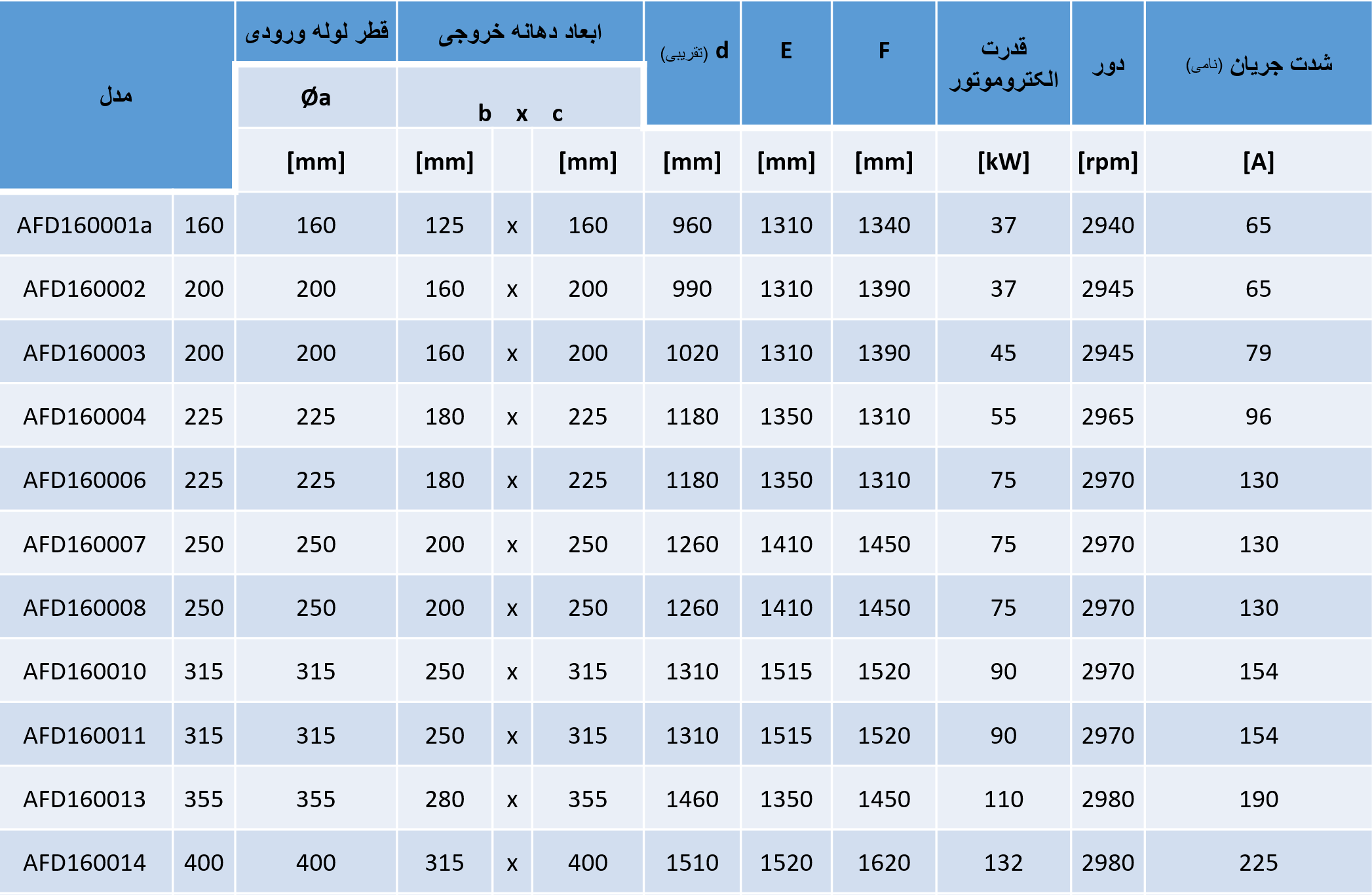 محدوده فن های 16 کیلوپاسکال مدل : AFD160002 - 200 تماس و مشاوره رایگان مدل : AFD160001 - 160 تماس و مشاوره رایگان مدل : AFD160004 - 225 تماس و مشاوره رایگان مدل : AFD160003 - 200 تماس و مشاوره رایگان مدل : AFD160007 - 250 تماس و مشاوره رایگان مدل : AFD160006 - 250 تماس و مشاوره رایگان مدل : AFD160010 - 315 تماس و مشاوره رایگان مدل : AFD160008 - 250 تماس و مشاوره رایگان مدل : AFD020023 - 710 تماس و مشاوره رایگان مدل : AFD160013 - 355 تماس و مشاوره رایگان مدل : AFD160014 - 400 تماس و مشاوره رایگان جدول ابعاد فن های 16kPa